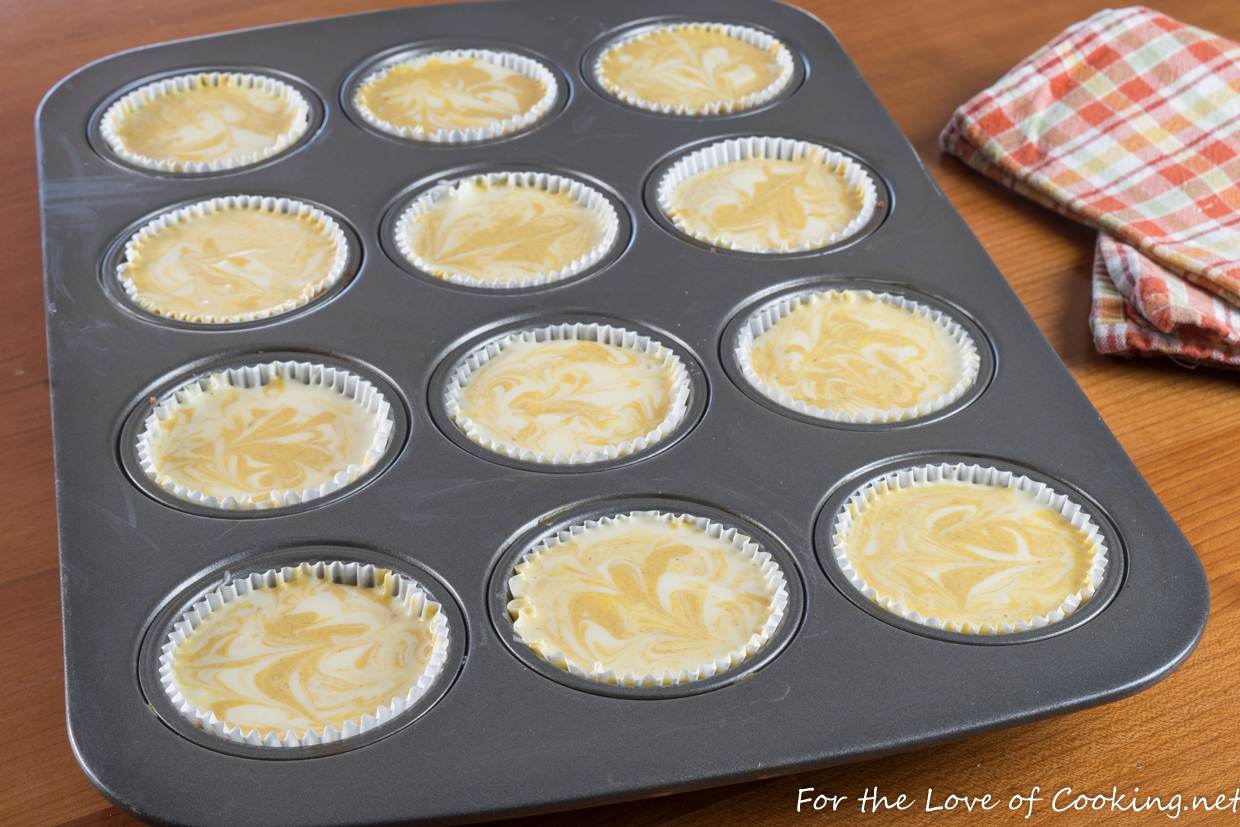 Mini Pumpkin Swirl Cheesecakes with Gingersnap Crust